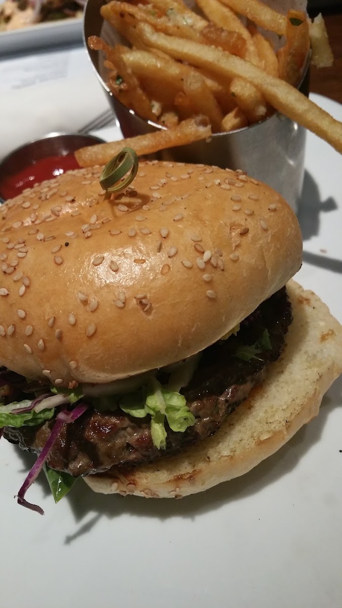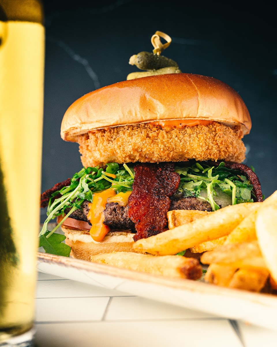 For those seeking something lighter, the Burrata & Beet Salad is a refreshing choice, combining creamy burrata with earthy beets, crispy pink little gem lettuce, and a drizzle of tamarind dressing that perfectly balances sweetness and acidity. If you’re in the mood for a burger, the Pub Burger, with its juicy Angus beef patty, melted American cheese, and all the classic fixings, is both comforting and satisfying, making it a must-try for any burger lover.